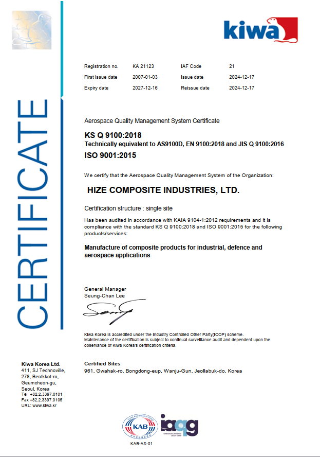 KS Q 9100 페이지 정보 작성자관리자 댓글 0건 조회 291회 작성일 24-09-23 15:49 본문 KS Q 9100 목록 이전글기업부설연구소 인정서 24.09.23 다음글ASIANA - Limited Composite AMO 24.08.06